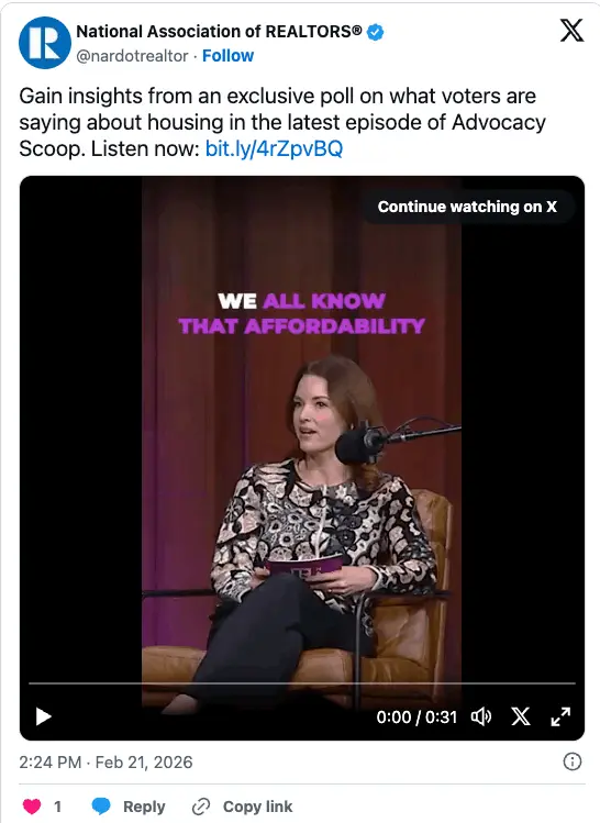— National Association of REALTORS® (@nardotrealtor) February 21, 2026